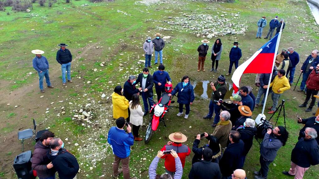 Con la presencia del Ministro de Agricultura Esteban Valenzuela, SEREMI de Agricultura Ana Muñoz, Delegada Presidencial Provincial de Linares Priscila González y Coordinador regional CNR del Maule Claudio Cortés, se realiza la entrega al Presidente de la Junta de Vigilancia, Antonio Ramírez Figueroa, de las llaves de la motocicleta que será parte de la organización para mejorar la gestión de distribución y vigilancia de las aguas del Río Ancoa y sus afluentes. En la ocasión Claudio Cortés,, Coordinador Zonal de la CNR, destacó el apoyo otorgado a la Junta de Vigilancia del río Ancoa a través del Fondo Concursable para Organizaciones de Usuarios de Agua (FOUA), que permitió a la Junta la compra de dicha motocicleta más un molinete aforador.